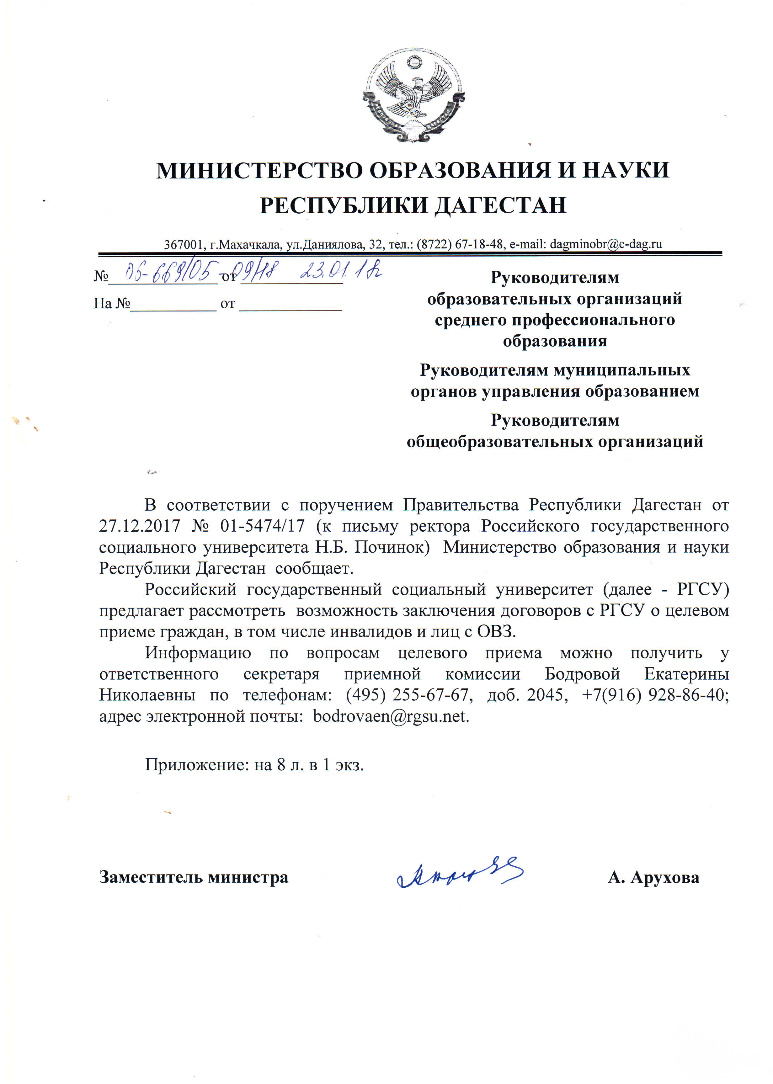 О возможности заключения договоров с РГСУ о целевом приеме граждан, в том числе инвалидов и лиц с ОВЗ