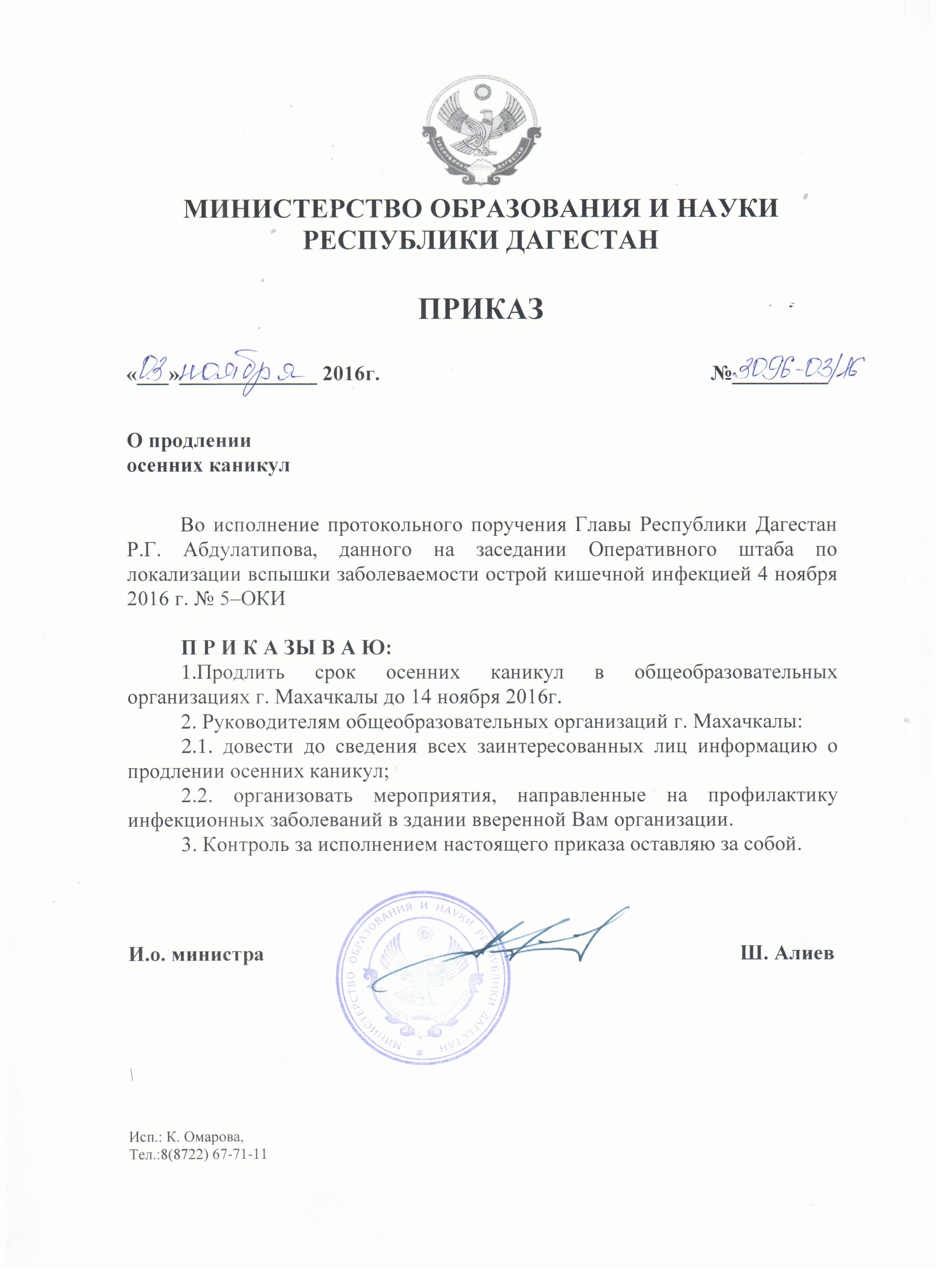 | 1 Ноября 2016 | Приказы Минобрнауки РД |