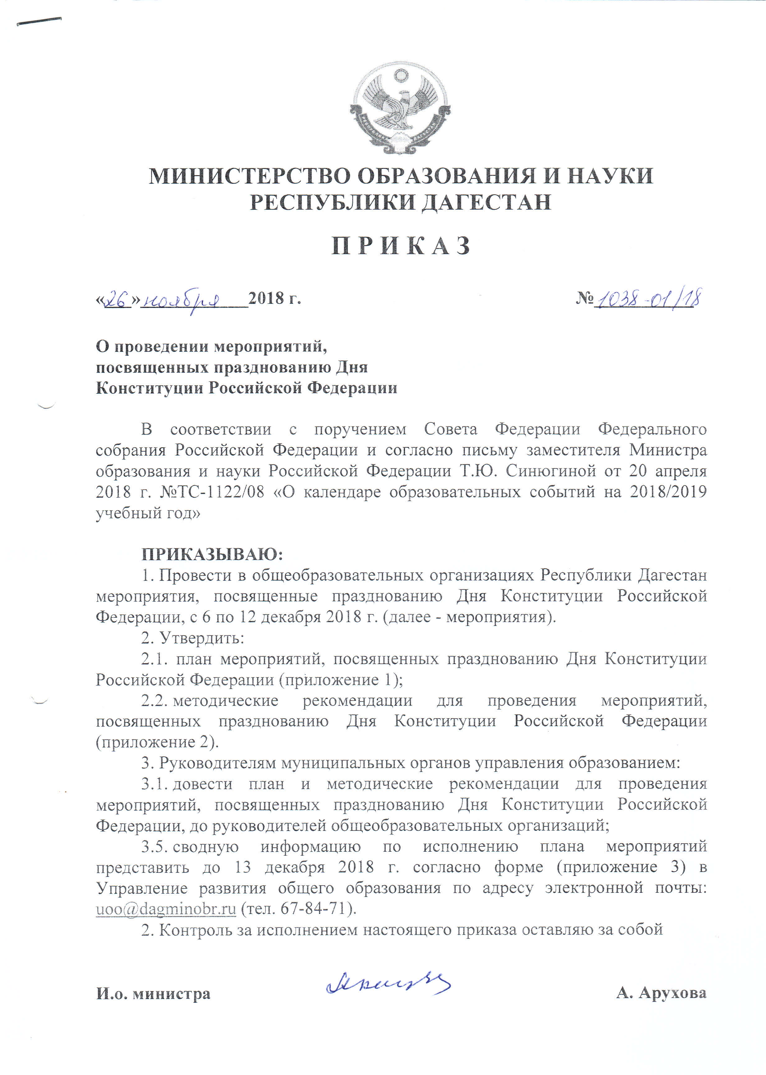 | 30 Ноября 2018 | Приказы Минобрнауки РД |