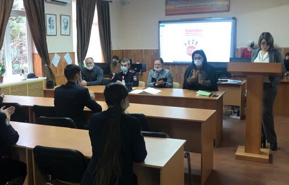 В круглом столе, проходившем на базе Автомобильно-дорожного колледжа, приняли участие оперуполномоченный МРО УЭБиПК МВД по РД (дислокация г.Махачкала), майор полиции Шамиль Омаров, заместитель директора по ВР АДК Марьям Мухтарова, куратор 13-Д группы Халид Сагитов.