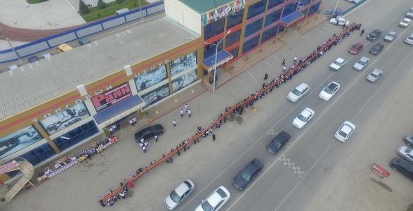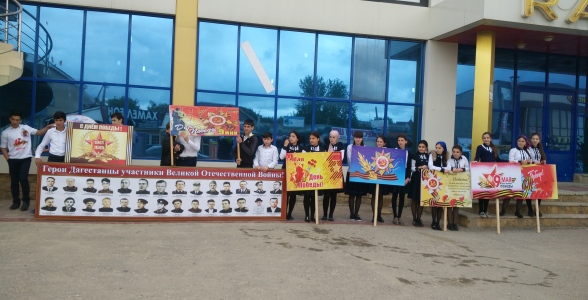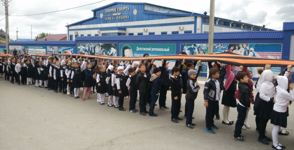 5 мая активисты школьного ученического самоуправления, члены клуба «Патриот» устроили грандиозную акцию «Георгиевская ленточка». Участие в мероприятии приняли учащиеся 1-х и 9-х классов МКОУ «Гимназия№3» г.Хасавюрта. Они растянули вдоль шоссе огромной протяженности символическую ленту, в которой был использован традиционный биколор Георгиевской ленты. Акция получила поддержку проезжавших водителей автомашин, которые радостными возгласами приветствовали участников мероприятия. Также учащиеся-волонтеры давали георгиевские ленточки водителям, тем самым делясь своей радостью с ними.
