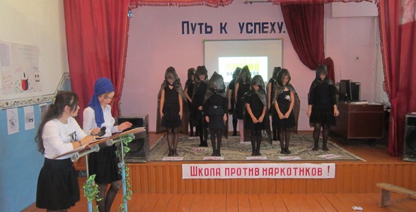 Участники завершили свое выступление клятвой: никогда не прикасаться к наркотикам и вести правильный и здоровый образ жизни. Выступление учащихся сопровождалось презентацией слайд - шоу под музыку к кинофильму «Реквием по мечте», зал был оформлен тематическими плакатами, рисунками, стендами «Скажи наркотикам – нет!»