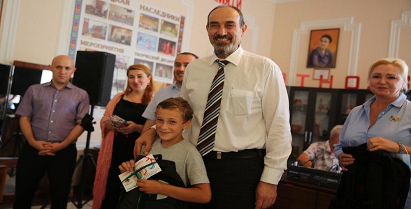 Врио министра образования и науки РД Яхья Бучаев и председатель ВОД «Матери России» по Махачкале Сефижат Магомедрасулова вручили сиротам и нуждающимся детям Каякентского района первые наборы школьных принадлежностей