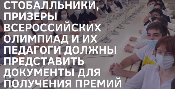 Стобалльники, призеры всероссийских олимпиад и их педагоги должны представить документы для получения премий