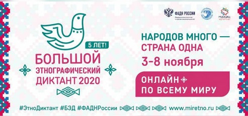 Всероссийская акция «Большой этнографический диктант - 2020» пройдет с 3 по 8 ноября в онлайн-формате. Присоединиться к участию в ней сможет любой желающий