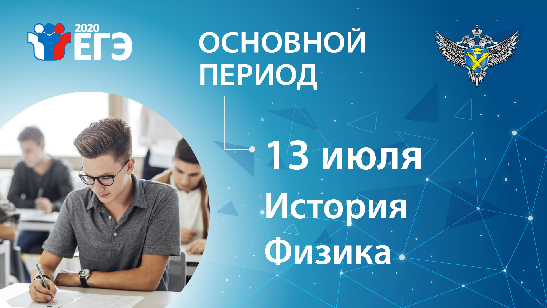 Экзамены по физике и истории участники основного периода ЕГЭ-2020 сдают 13 июля