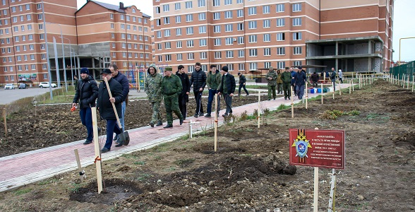 Учащиеся и педагоги центра, представители Юнармейского движения совместно со Следственным Комитетом РД посадили фруктовые деревья в рамках Международной акции «Аллея памяти»