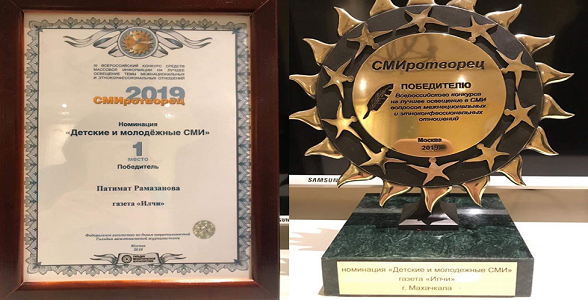 Министерство образования и науки РД поздравляет республиканскую газету «Илчи» с победой во Всероссийском конкурсе «СМИротворец»