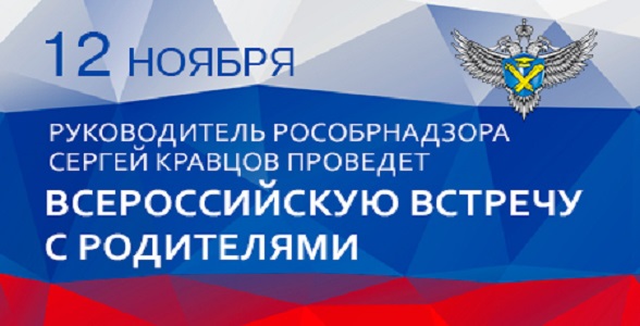 Всероссийская встреча с родителями руководителя Федеральной службы по надзору в сфере образования и науки Сергея Кравцова пройдет 12 ноября 2019 года в Ситуационно-информационном центре Рособрнадзора