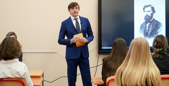 Министр просвещения России Сергей Кравцов провел занятие из цикла «Разговоры о важном» для девятиклассников московской школы № 1501. Он рассказал о проведении в 2023 году согласно Указу Президента Года педагога и наставника, о ключевых смыслах его символа и запланированных мероприятиях