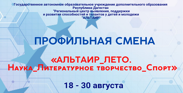 Летняя выездная профильная образовательная смена «Альтаир. Лето: Наука. Литературное творчество. Спорт» пройдёт с 18 по 30 августа 2022 года на базе РЦО «Солнечный берег»