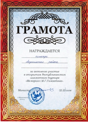 Победитель Республиканского шахматного турнира «Мемориал М.Г. Гамзатова»