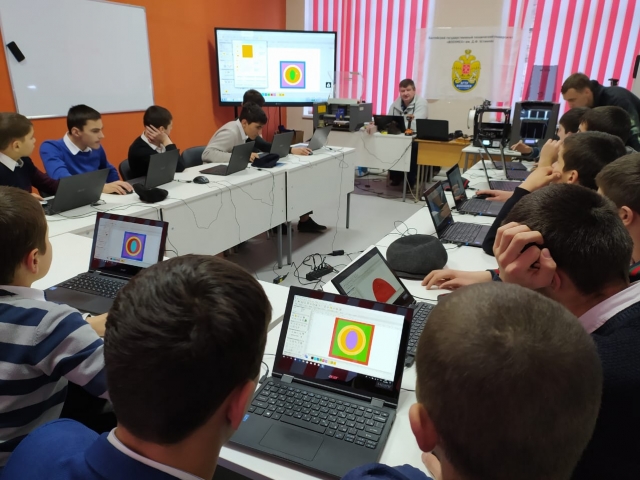 Обучение проводилось в Центре образования цифрового и гуманитарного профилей «Точка роста» с использованием программно-гравировального фрезерного станка ЧПУ, лазерно-гравировального станка и 3D принтеров.