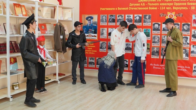 Официальные приветствия сменялись выступлениями учащихся образовательных организаций района. Дети исполняли песни из тематики военных лет, танцевали и играли на старинных музыкальных инструментах.