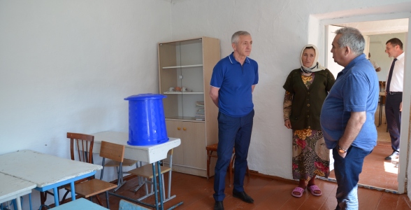 Затем делегация отправилась в с.Тлярош, где Шахабас Шахов посетил школу –интернат. Школа была открыта в 1927 году, и в ней с тех пор ни разу не проводился капитальный ремонт. При школе функционирует интернат, где проживают дети из пяти сел района.