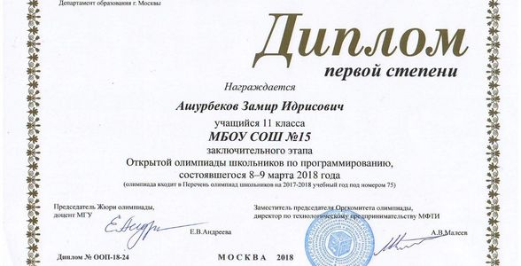 Школьник из Дербента стал победителем Всероссийской олимпиады по программированию
