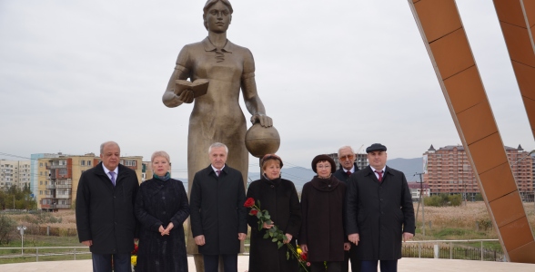 Участники Всероссийского форума русского языка и литературы возложили 30 октября цветы к монументу Русской интеллигенции в Махачкале.