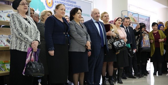 Также в фойе была организована демонстрационная выставка новых школьных учебников по родным языкам и книг, изданных о языках Дагестана по инициативе ДНЦ РАН, Министерства по национальной политике и делам религий Республики Дагестан, Центра изучения родных языков и Союза писателей Дагестана.