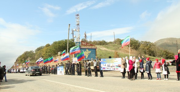 Кульминацией мероприятия стал флешмоб, где дети, взявшись за руки, выстроились в цепочку вдоль трассы Махачкала – Буйнакск, скандировали лозунги и приветствовали проезжающих. Завершилось мероприятие установкой баннеров с лозунгами о мире, дружбе и добре.