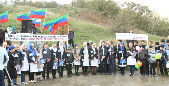 Учащиеся Чиркейского многопрофильного лицея им. А. Омарова Буйнакского района выступили с акцией под названием «Дети мира, возьмитесь за руки!».