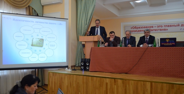 Затем Александр Кондаков рассказал о проекте развития образования Дагестана до 2020 года. Было отмечено, что проект постепенно разрастается. «Очень важно, чтобы то, что делаем мы, то, что мы предлагаем, те запросы, которые вы нам даете, хорошо соотносились между собой, и чтобы это была наша общая позиция, а не некий набор тезисов, который транслируют либо снизу, либо сверху. Мы понимаем всю сложность и целостность проекта, о котором идет речь. Поэтому разговор я начну с того, что сегодня происходит в образовании. Если мы хотим успешности наших детей, детей Дагестана, мы должны принять для себя одну очень простую вещь – за 5-летний срок мы должны не просто развить систему образования республики, а совершить качественный скачок, который позволит в течение очень короткого исторического отрезка времени выйти на лучшие российские и мировые показатели образования. Подобного рода скачки и Россия, и Советский Союз, и Дагестан уже совершали. Это возможно, но возможно только при объединении усилий всех участников образовательных отношений», – отметил он.