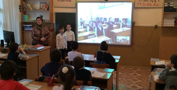 В прогимназии «Ручеек» прошел телемост по английскому языку со 2-м классом СОШ № 13 г.Хасавюрта на тему: «Мы друзья»